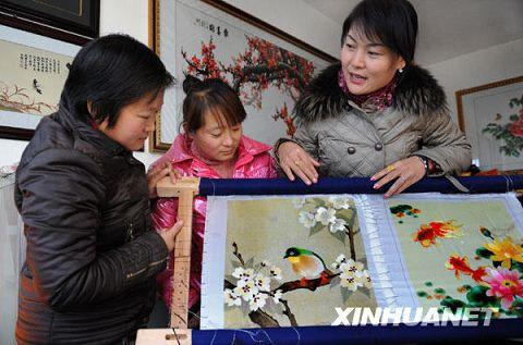 12月2日,學(xué)生們正在刺繡
