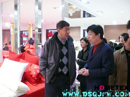 3月9日上午,中國紡織工業(yè)協(xié)會(huì )副會(huì )長(cháng)張延愷等一行五六人來(lái)疊石橋家紡城調研家紡市場(chǎng)發(fā)展情況,此次是張會(huì )長(cháng)江蘇站中的最后一站。海門(mén)市副市長(cháng)郭曉敏、海門(mén)工業(yè)園區管委會(huì )主任郭輝、家紡企業(yè)代表及相關(guān)部門(mén)負責人一起陪同參觀(guān)。