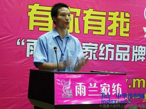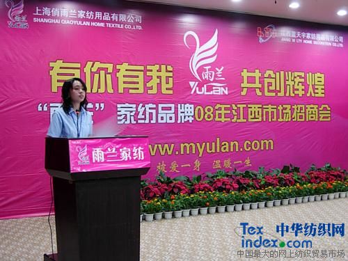 “雨蘭”策劃部歐陽(yáng)經(jīng)理結合萬(wàn)總的發(fā)言,從中國經(jīng)濟的發(fā)展、人口比例的分布、家紡流行發(fā)展趨勢等各個(gè)方面數據為經(jīng)銷(xiāo)商們展示家紡品牌加盟前景。并為經(jīng)銷(xiāo)商們介紹公司將如何運用廣告、促銷(xiāo)等一系列的策劃活動(dòng)給經(jīng)銷(xiāo)商們一個(gè)宣傳支持,為經(jīng)營(yíng)“雨蘭”品牌的合作伙伴準確、快速的切入到當地的市場(chǎng)提供幫助。