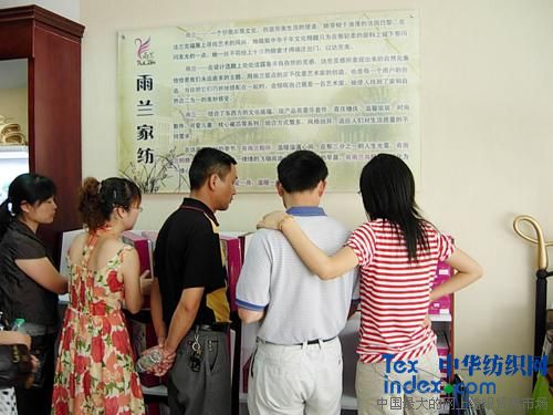 會(huì )議議程到此,經(jīng)銷(xiāo)商們已經(jīng)對雨蘭品牌有了深刻的了解。但這還不夠,這些經(jīng)銷(xiāo)商們匆匆吃完工作人員在北湖賓館精心準備的豐盛酒席后,便上車(chē)前往專(zhuān)賣(mài)店參觀(guān)?梢(jiàn)激動(dòng)的不只是筆者我,這也讓我的會(huì )前激動(dòng)的心緒找到了原因。筆者在專(zhuān)賣(mài)店和展示廳里看到經(jīng)銷(xiāo)商們前擁后擠,扎堆熱論,時(shí)而頂頭稱(chēng)贊,時(shí)而認真研究,時(shí)而搖頭端詳的樣子,不禁莞爾。但同時(shí)也為他們的認真態(tài)度肅然起敬,正是有這樣的一批人,家紡行業(yè)才會(huì )欣欣向榮。