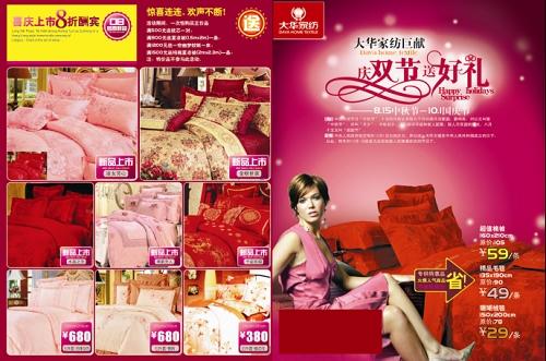 大華家紡在中秋節國慶節來(lái)臨之際,推出"慶雙節 送好禮"大型促銷(xiāo)活動(dòng)。大華家紡雙節送禮,超值回饋。