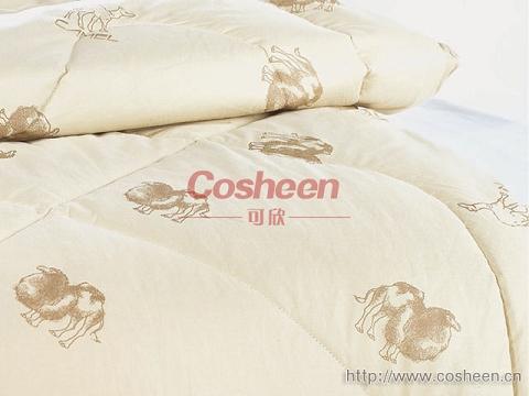 可欣駝絨被的內胎選用優(yōu)質(zhì)駝絨和纖細羊毛絨混合配比,經(jīng)去味、洗滌、消毒、梳紡等流程精制而成,無(wú)菌無(wú)異味無(wú)雜質(zhì),手感蓬松柔軟,保暖效果是太空棉的三倍,使用壽命是棉花的十倍。