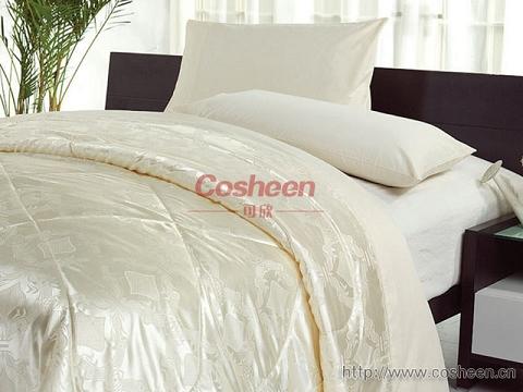 可欣大豆纖維被面料采用仿真絲大提花,里料使用加密純棉,填充物為大豆蛋白纖維混纖絮料,加以精湛完美的工藝,使產(chǎn)品外觀(guān)華麗、高雅,里料純棉貼身舒適。大豆纖維被吸濕導濕特別快,使用起來(lái)干爽舒適,柔軟滑爽,皮膚有很好的親合力。大豆纖維富含多種對人體有益的微量元素,睡眠中自然滋潤肌膚。